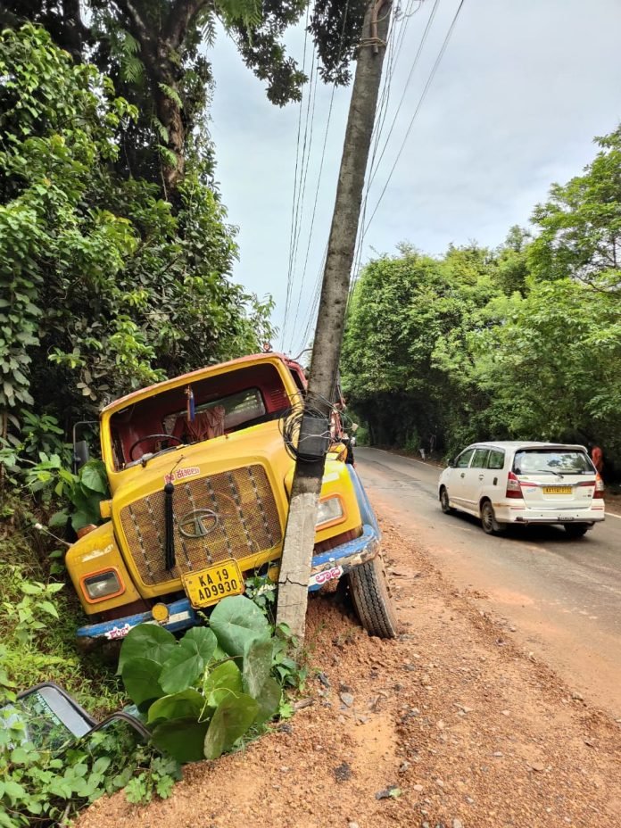 ಮುಲ್ಕಿ: ಕಿನ್ನಿಗೋಳಿ ಮುಲ್ಕಿ ರಾಜ್ಯ ಹೆದ್ದಾರಿಯ ಸೀನಪ್ಪಯ್ಯ ಕೋಡಿ (ಎಸ್. ಕೋಡಿ) ಬಳಿ ಟಿಪ್ಪರ್ ಅದರ ಚಾಲಕನ ನಿಯಂತ್ರಣ ತಪ್ಪಿ ವಿದ್ಯುತ್ ಕಂಬಕ್ಕೆ ಡಿಕ್ಕಿ ಹೊಡೆದು ಅಪಘಾತ ಸಂಭವಿಸಿದ ಘಟನೆ ಗುರುವಾರ ಬೆಳಗ್ಗಿನ ಜಾವ ನಡೆದಿದೆ.