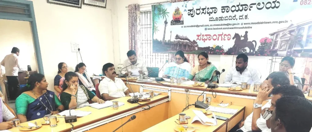 ಮೂಡುಬಿದಿರೆ ಪುರಸಭೆಯ ಮಾಸಿಕ ಸಭೆ ಅಕ್ಟೋಬರ್ 15ರಂದು ಕಚೇರಿಯ ಸಭಾಂಗಣದಲ್ಲಿ ಶ್ರೀಮತಿ ಜಯಶ್ರೀ ಕೇಶವ್ ಅಧ್ಯಕ್ಷತೆಯಲ್ಲಿ ಹಾಗೂ ಉಪಾಧ್ಯಕ್ಷ ನಾಗರಾಜ ಪೂಜಾರಿ, ಸ್ಥಾಯಿ ಸಮಿತಿಯ ಅಧ್ಯಕ್ಷ ಸ್ವಾತಿ ಪ್ರಭು, ಮುಖ್ಯಾಧಿಕಾರಿ ಇಂದು ಅವರ ಸಮಕ್ಷಮ ನಡೆಯಿತು. ಜನಪ್ರತಿನಿಧಿ ಕೊರಗಪ್ಪ ಅವರು ಕಳೆದ ನಾಲ್ಕು ಮೀಟಿಂಗ್ಗಳಿಂದ ಬೊಬ್ಬೆ ಹೊಡೆದು ವಿವಿಧ ವಿಷಯಗಳ ಬಗ್ಗೆ ನಿರ್ಣಯವನ್ನು ಮಾಡಿಸಿದರೂ ಕೂಡ, ದಾಖಲೀಕರಣ ಏಕೆ ಮಾಡಿಲ್ಲ ಎಂದು ನೇರವಾಗಿ ಪ್ರಶ್ನಿಸಿದರು. ಉದಾಹರಣೆಗೆ ಪೈಪ್ಲೈನ್ ಕಾಮಗಾರಿಯನ್ನು ಮುಂದುವರಿಸುವ ಬಗ್ಗೆ ಎಲ್ಲ ಸದಸ್ಯರಿಂದ ತಡೆ ಇದ್ದರೂ ಕೂಡ ಸದಸ್ಯರ ಗಮನಕ್ಕೆ ತರದೆ ಕಾಮಗಾರಿಯನ್ನು ಮುಂದುವರಿಸಲಾಗಿದೆ. ಶಾಸಕರೊಂದಿಗಿನ ಸಭೆಯಲ್ಲಿ ಪೈಪ್ಲೈನ್ ಹಾಗೂ ರಸ್ತೆ ಕಾಮಗಾರಿಗಳನ್ನು ಪಿಡಬ್ಲ್ಯೂಡಿ, ಜಲ ಮಂಡಳಿ ಇಲಾಖೆಯವರು ಮಾಡುತ್ತಾರೆಂದು ತಿಳಿಸಿದರೂ, ಕೂಡ ಆ ಬಗ್ಗೆ ಯಾವುದೇ ಕ್ರಮ ಜರುಗಿಲ್ಲ.