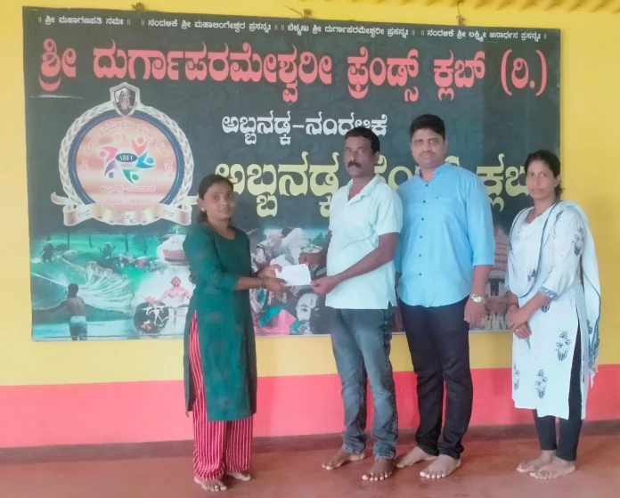ರಾಜ್ಯ ಅತ್ಯುತ್ತಮ ಯುವ ಮಂಡಳಿ ಪ್ರಶಸ್ತಿ ಪುರಸ್ಕೃತ ಸಂಸ್ಥೆ ನಂದಳಿಕೆ ಅಬ್ಬನಡ್ಕ ಶ್ರೀ ದುರ್ಗಾಪರಮೇಶ್ವರೀ ಫ್ರೆಂಡ್ಸ್ ಕ್ಲಬ್ ವತಿಯಿಂದ ವೈದ್ಯಕೀಯ ಚಿಕಿತ್ಸೆಗೆ ನೆರವು ಹಸ್ತಾಂತರಿಸಲಾಯಿತು.