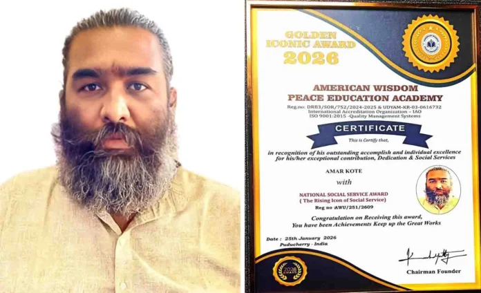 ಮೂಡುಬಿದಿರೆ : ಜವನೆರ್ ಬೆದ್ರ ಫೌಂಡೇಶನ್(ರಿ.) ಸಂಸ್ಥಾಪಕ ಅಮರ್ ಕೋಟೆ ಅವರಿಗೆ ಅಮೇರಿಕನ್ ವಿಸ್ಡಮ್ ಪೀಸ್ ಎಜುಕೇಶನ್ ಆಕಾಡೆಮಿ ವತಿಯಿಂದ ನೀಡುವ ಗೋಲ್ಡನ್ ಐಕಾನಿಕ್ ಅವಾರ್ಡ್-2026ರ “ರಾಷ್ಟ್ರೀಯ ಸಮಾಜ ಸೇವಾ” ಪ್ರಶಸ್ತಿ ಲಭಿಸಿದೆ. ಸಮಾನ ಮನಸ್ಕರ ಯುವಕರ ತಂಡವೊಂದನ್ನು ಕಟ್ಟಿ ಕಳೆದ ಒಂದು ದಶಕಗಳಿಂದ ಅಮರ್ ಕೋಟೆ ನೇತೃತ್ವದ ಜವನೆರ್ ಬೆದ್ರ ಫೌಂಡೇಶನ್ ನೂರಾರು ಸಮಾಜಮುಖಿ ಕೆಲಸ ಕಾರ್ಯಗಳನ್ನು ಮಾಡುತ್ತಾ ಬಂದಿದೆ.