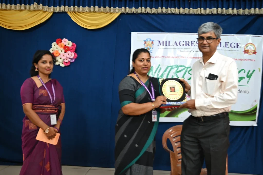 ಕರ‍್ಯಕ್ರಮ ಉದ್ಘಾಟಿಸಿದ ಕಾಲೇಜಿನ ಪ್ರಾಂಶುಪಾಲರಾದ ವಂ| ಡಾ. ಆಲ್ವಿನ್ ಸೆರಾವೊ ಮಾತನಾಡಿ, ಅಗತ್ಯ ಪೋಷಕಾಂಶಗಳು ನಮ್ಮ ದೈನಂದಿನ ಜೀವನದಲ್ಲಿ ಅತ್ಯಂತ ಪ್ರಮುಖ ಪಾತ್ರವಹಿಸುತ್ತವೆ ಹಾಗೂ ಆಹಾರ ಮತ್ತು ಪೌಷ್ಟಿಕತೆ ಕುರಿತು ಜನರಿಗೆ ಶಿಕ್ಷಣ ನೀಡುವುದು ಅನೇಕ ರೋಗಗಳನ್ನು ತಡೆಗಟ್ಟುವಲ್ಲಿ ಮುಖ್ಯ ಕೀಲಿಕೈ ಎಂದರು.