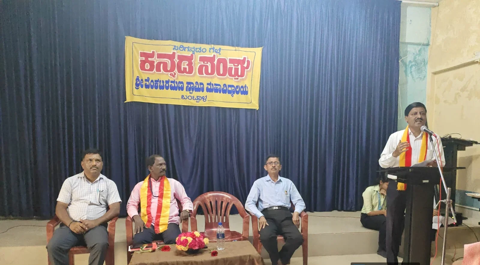 ಹೇಳಿದರು. ಇವರು ಶ್ರೀ ವೆಂಕಟರಮಣ ಸ್ವಾಮೀ ಕಾಲೇಜಿನ ಕನ್ನಡ ಸಂಘ ಹಾಗೂ ಐ.ಕ್ಯೂ.ಎ.ಸಿ. ಕೋಶಗಳ ಆಶ್ರಯದಲ್ಲಿ ನಡೆದ ‘ಕನ್ನಡ ನಾಡು-ನುಡಿ’ ಕಾರ್ಯಕ್ರಮದ ಮುಖ್ಯ ಅತಿಥಿಯಾಗಿ ಭಾಗವಹಿಸಿ ಮಾತನಾಡಿದರು. ಕಾರ್ಯಕ್ರಮದ ಅಧ್ಯಕ್ಷತೆ ವಹಿಸಿದ್ದ ಶ್ರೀ ವೆಂಕಟರಮಣ ಸ್ವಾಮೀ ಕಾಲೇಜಿನ ಪ್ರಾಂಶುಪಾಲರಾದ ಶ್ರೀ ಎಂ.ಡಿ.ಮAಚಿಯವರು