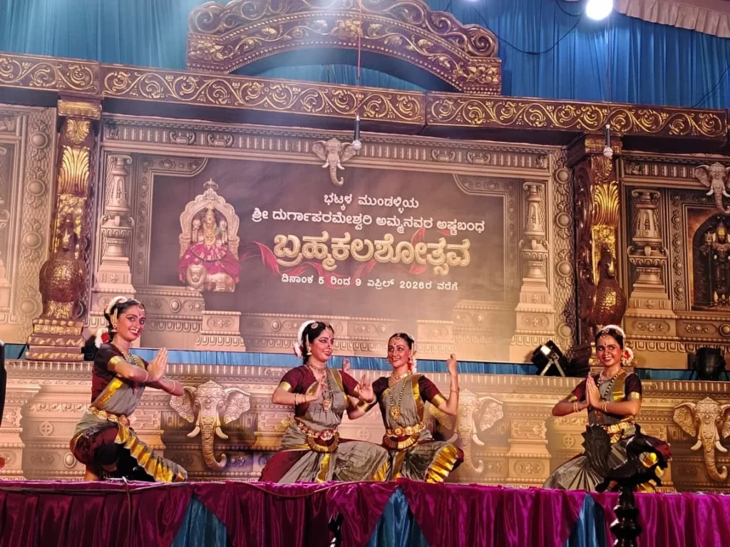 ಭಟ್ಕಳ- ಮುಂಡಳ್ಳಿ ಶ್ರೀ ದುರ್ಗಾಪರಮೇಶ್ವರಿ ಅಮ್ಮನವರ ಅಷ್ಠ ಬಂಧ ಬ್ರಹ್ಮ ಕಲಶೋತ್ಸವ ಮೂರನೇ ದಿನ ದ.ಕ.ಜಿಲ್ಲೆಯ ಬಂಟ್ವಾಳದ ಪದಯಾನ ತಂಡದ ನೃತ್ಯಾರ್ಪಣಂ ಕಾರ್ಯಕ್ರಮ ಆಯೋಜಿಸಲಾಗಿತ್ತು.ವಿದುಷಿ ಪ್ರಣತಿ ಚೈತನ್ಯ ಪದ್ಯಾಣ ಇವರ ನೇತೃತ್ವದಲ್ಲಿ ನಡೆದ ಒಂದುವರೆ ಗಂಟೆಗಳ ನೃತ್ಯ ಕಾರ್ಯಕ್ರಮ ಪ್ರೇಕ್ಷಕರನ್ನು ಭಕ್ತಿ ಪರವಶಗೊಳಿಸಿತು.