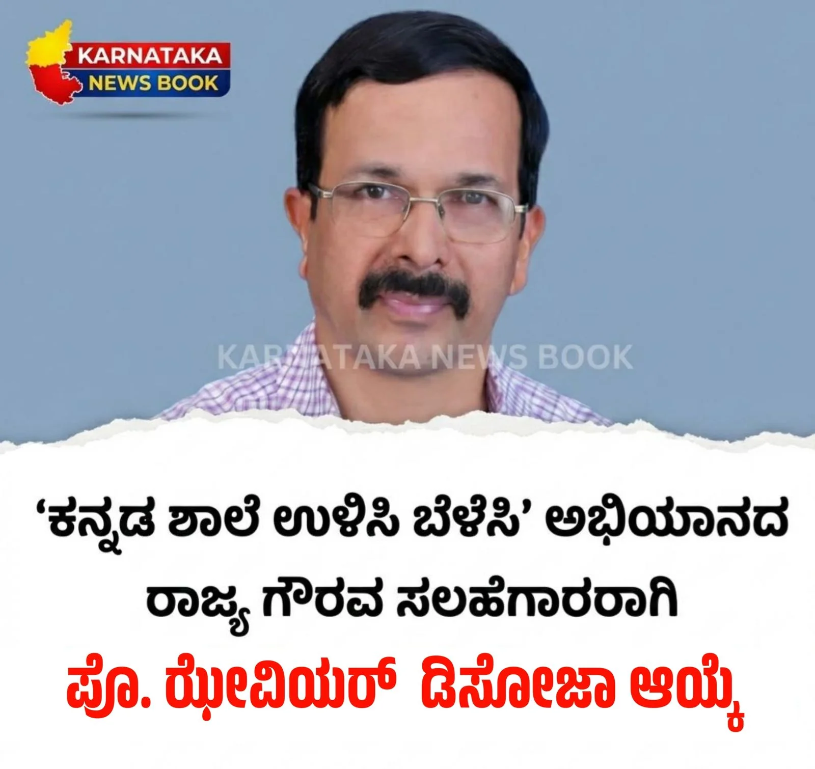 ಸರ್ಕಾರಿ ಕನ್ನಡ ಶಾಲೆಗಳ ರಕ್ಷಣೆ ಹಾಗೂ ಶೈಕ್ಷಣಿಕ ಅಭಿವೃದ್ಧಿಗಾಗಿ ಶ್ರಮಿಸುತ್ತಿರುವ ‘ಕನ್ನಡ ಶಾಲೆ ಉಳಿಸಿ ಬೆಳೆಸಿ’ ಅಭಿಯಾನದ ರಾಜ್ಯ ಗೌರವ ಸಲಹೆಗಾರರಾಗಿ ಹಿರಿಯ ಶಿಕ್ಷಣ ತಜ್ಞ, ಪ್ರೊ. ಝೇವಿಯರ್ ಡಿಸೋಜಾ ಅವರನ್ನು ಸರ್ವಾನುಮತದಿಂದ ಆಯ್ಕೆ ಮಾಡಲಾಗಿದೆ.