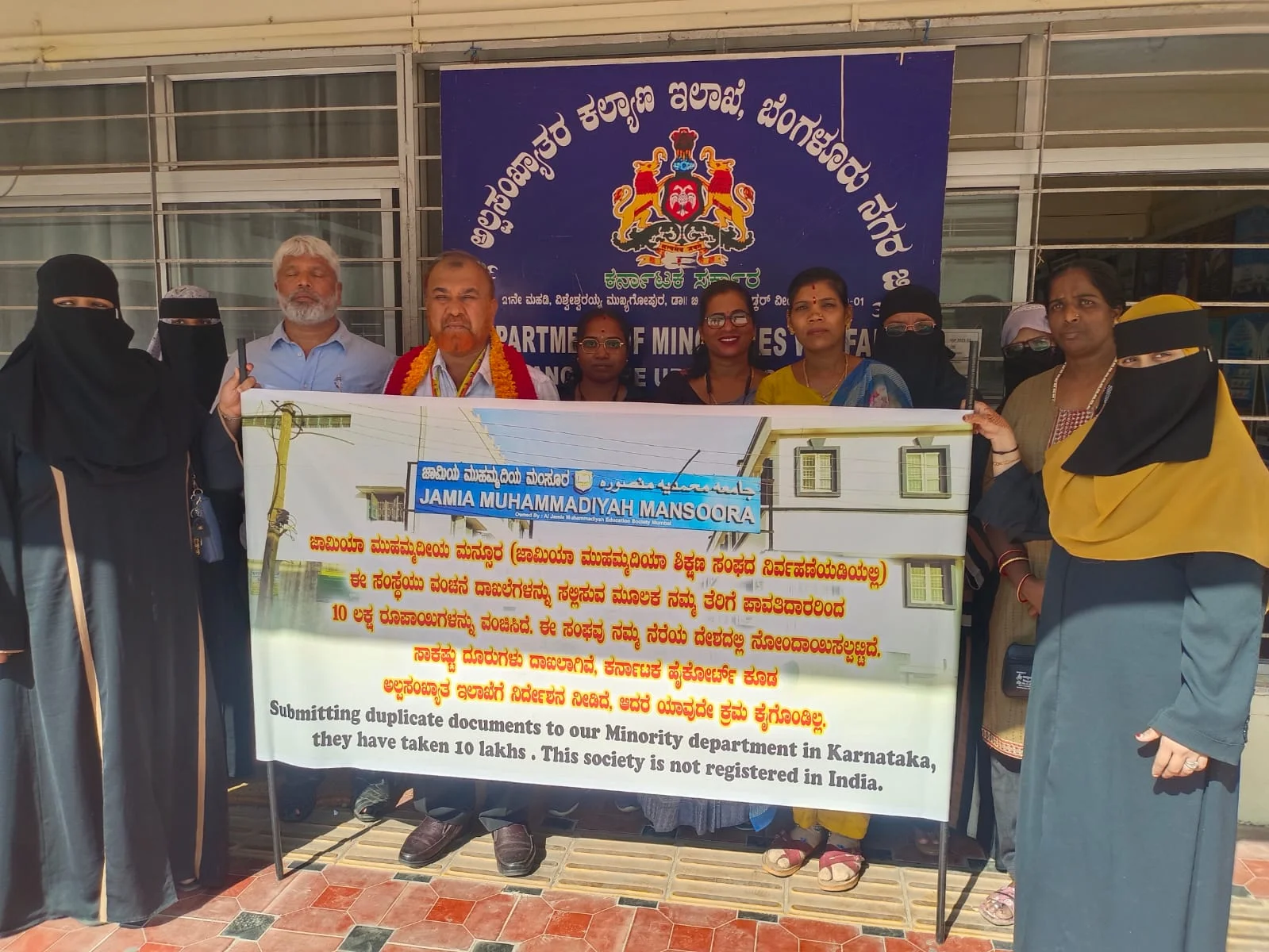 ವಿಶ್ವೇಶ್ವರಯ್ಯ ಟವರ್ ನಲ್ಲಿರುವ ಅಲ್ಪಸಂಖ್ಯಾತ ಕಲ್ಯಾಣ ಇಲಾಖೆಯ ಕಚೇರಿಗೆ ತೆರಳಿ ಅಧಿಕಾರಿಗಳ ನಿಷ್ಕಾಳಜಿ ವಿರುದ್ಧ ಹೋರಾಟಗಾರರು. ಸಾಮರ ಇಂಟರ್ ನ್ಯಾಷನಲ್ ಇಸ್ಲಾಮಿಕ್ ಸ್ಕೂಲ್ ಮಾನ್ಯತೆಯನ್ನು ಶಾಲಾ ಶಿಕ್ಷಣ ಇಲಾಖೆ ರದ್ದುಪಡಿಸಿದ್ದು, ಅಲ್ಪ ಸಂಖ್ಯಾತರ ಕಲ್ಯಾಣ ಇಲಾಖೆ ನೀಡಿರುವ 10 ಲಕ್ಷ ರೂಪಾಯಿ ಅನುದಾನ ವಾಪಸ್ ಪಡೆಯಬೇಕೆಂದು ಹೈಕೋರ್ಟ್, ಶಿಕ್ಷಣ ಇಲಾಖೆ ಆದೇಶ ನೀಡಿದೆ. ಆದೇಶಗಳನ್ನು ಪಾಲಿಸುತ್ತಿಲ್ಲ ಎಂದು