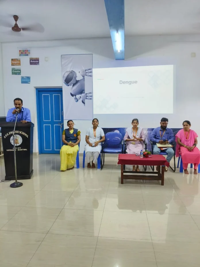 ದ.ಕ ಜಿಲ್ಲಾ ಪಂಚಾಯತ್ , ಬಂಟ್ವಾಳ ನಗರ ಪ್ರಾಥಮಿಕ ಆರೋಗ್ಯ ಕೇಂದ್ರ ಮತ್ತು ಶ್ರೀ ವೆಂಕಟರಮಣ ಸ್ವಾಮಿ ಆಂಗ್ಲ ಮಾಧ್ಯಮ ಶಾಲೆ ವಿದ್ಯಾಗಿರಿ, ಬಂಟ್ವಾಳ ಇವರ ಜಂಟಿ ಆಶ್ರಯದಲ್ಲಿ ದಿನಾಂಕ 27.06.2025 ರಂದು ಡೆಂಗ್ಯೂ ಹಾಗೂ ಕೀಟ ಜನ್ಯ ರೋಗಗಳ ಬಗ್ಗೆ ಜನ ಜಾಗೃತಿ ಅಭಿಯಾನ ನಡೆಯಿತು. ಶಾಲೆಯ ಮುಖ್ಯ ಶಿಕ್ಷಕರಾದ ಹರಿಪ್ರಸಾದ್ ಸ್ವಾಗತಿಸಿದರು. ಬಂಟ್ವಾಳ ನಗರ ವೈದ್ಯಾಧಿಕಾರಿಗಳಾದ ಡಾ. ಅಶ್ವಿನಿ ಇವರು ಡೆಂಗ್ಯೂ ಹಾಗೂ ಕೀಟ ಜನ್ಯ ರೋಗಗಳ ಹರಡುವಿಕೆ, ನಿಯಂತ್ರಣ ಹಾಗೂ ಸುರಕ್ಷತಾ ಕ್ರಮಗಳ ಬಗ್ಗೆ ಮಕ್ಕಳಿಗೆ ಅರಿವು ಮೂಡಿಸಿದರು. ರಾಕೇಶ್ ನಿರೀಕ್ಷಣಾಧಿಕಾರಿ, ಸಂಧಿಕಾ ಸುರಕ್ಷಣಾಧಿಕಾರಿ ಮತ್ತು ಮಂಜುಳಾ, ಆಶಾ ಕಾರ್ಯಕರ್ತೆ, ಹಾಗೂ ಪ್ರಾಥಮಿಕ ವಿಭಾಗದ ಮುಖ್ಯಸ್ಥೆ ಶ್ರೀದೇವಿ ಪಿ ಅಭಿಯಾನದಲ್ಲಿ ಭಾಗವಹಿಸಿದರು.