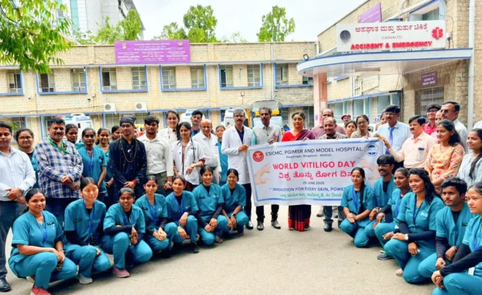 ಬೆಂಗಳೂರು,ಜೂ.25: ವಿಶ್ವ ತೊನ್ನು ರೋಗ ದಿನದ ಅಂಗವಾಗಿ ರಾಜಾಜಿನಗರ ಇ ಎಸ್ ಐ ಸಿ ಆಸ್ಪತ್ರೆಯ ಆವರಣದಲ್ಲಿ ಜನ ಜಾಗೃತಿ ಕಾರ್ಯಕ್ರಮವನ್ನು ಏರ್ಪಡಿಸಲಾಗಿತ್ತು.
