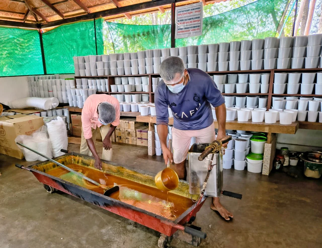 ಬ್ರಹ್ಮಾವರ : ಇಲ್ಲಿನ ಸಕ್ಕರೆ ಕಾರ್ಖಾನೆಯಲ್ಲಿ ಪರಂಪರೆ ವಿಧಾನದಲ್ಲಿ ಯಾವುದೇ ರಾಸಾಯನಿಕ ಮಿಶ್ರಣವಿಲ್ಲದೆ ಪರಿಶುದ್ಧ ಬೆಲ್ಲ ಹಾಗೂ ಜೋನಿ ಬೆಲ್ಲ ತಯಾರಿಸಲಾಗುತ್ತಿದೆ. ಸ್ವಾಭಾವಿಕ ಸಿಹಿತನ ಮತ್ತು ಗುಣಮಟ್ಟದಿಂದಾಗಿ ಈ ಬೆಲ್ಲಗಳಿಗೆ ಹೆಚ್ಚಿನ ಬೇಡಿಕೆ ಕಂಡುಬಂದಿದೆ.