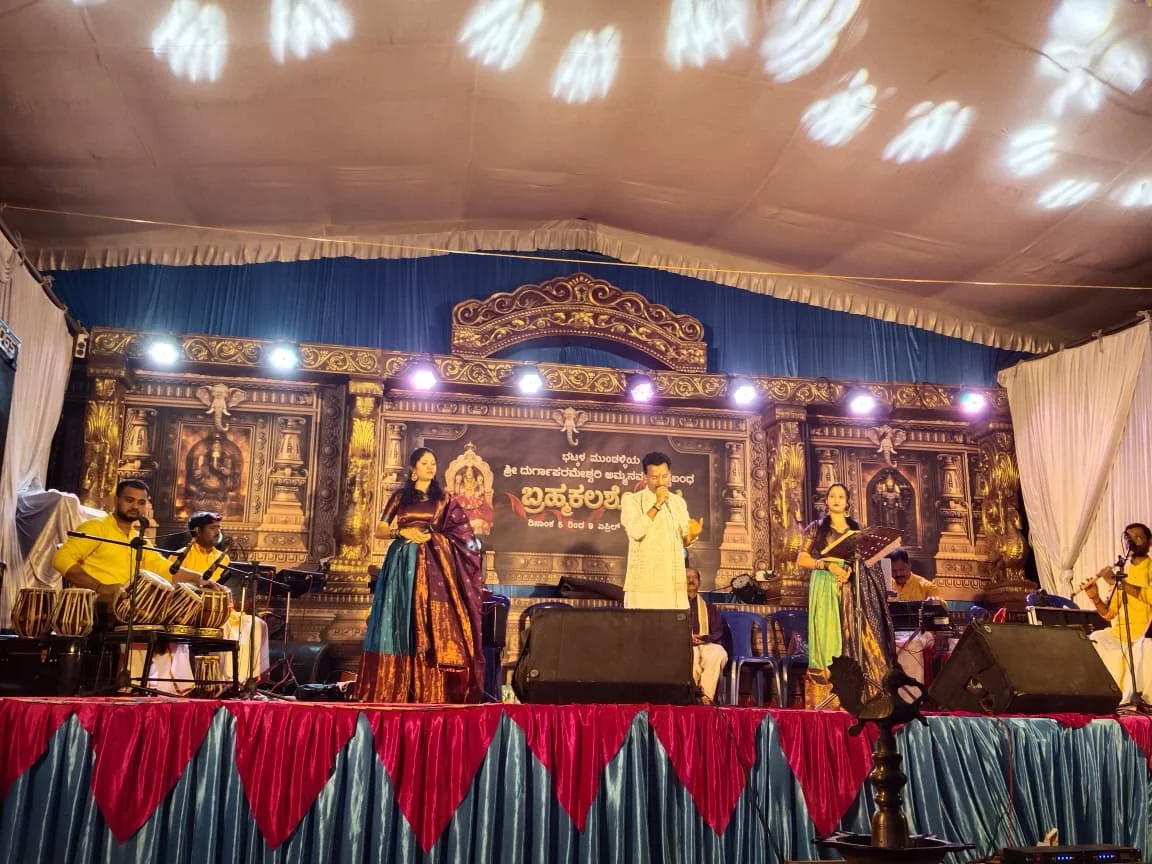 ಭಟ್ಕಳ : ಮುಂಡಳ್ಳಿ ಶ್ರೀ ದುರ್ಗಾಪರಮೇಶ್ವರಿ ಅಮ್ಮನವರ ಅಷ್ಠ ಬಂಧ ಬ್ರಹ್ಮ ಕಲಶೋತ್ಸವ ಕನೆಯ ದಿನ ಸಾಂಸ್ಕೃತಿಕ ಕಾರ್ಯಕ್ರಮದ ಭಾಗವಾಗಿ ಜಗದೀಶ್ ಪುತ್ತೂರು ಅವರ ಭಕ್ತಿ ಸಂಗೀತ ಆಯೋಜಿಸಲಾಗಿತ್ತು.