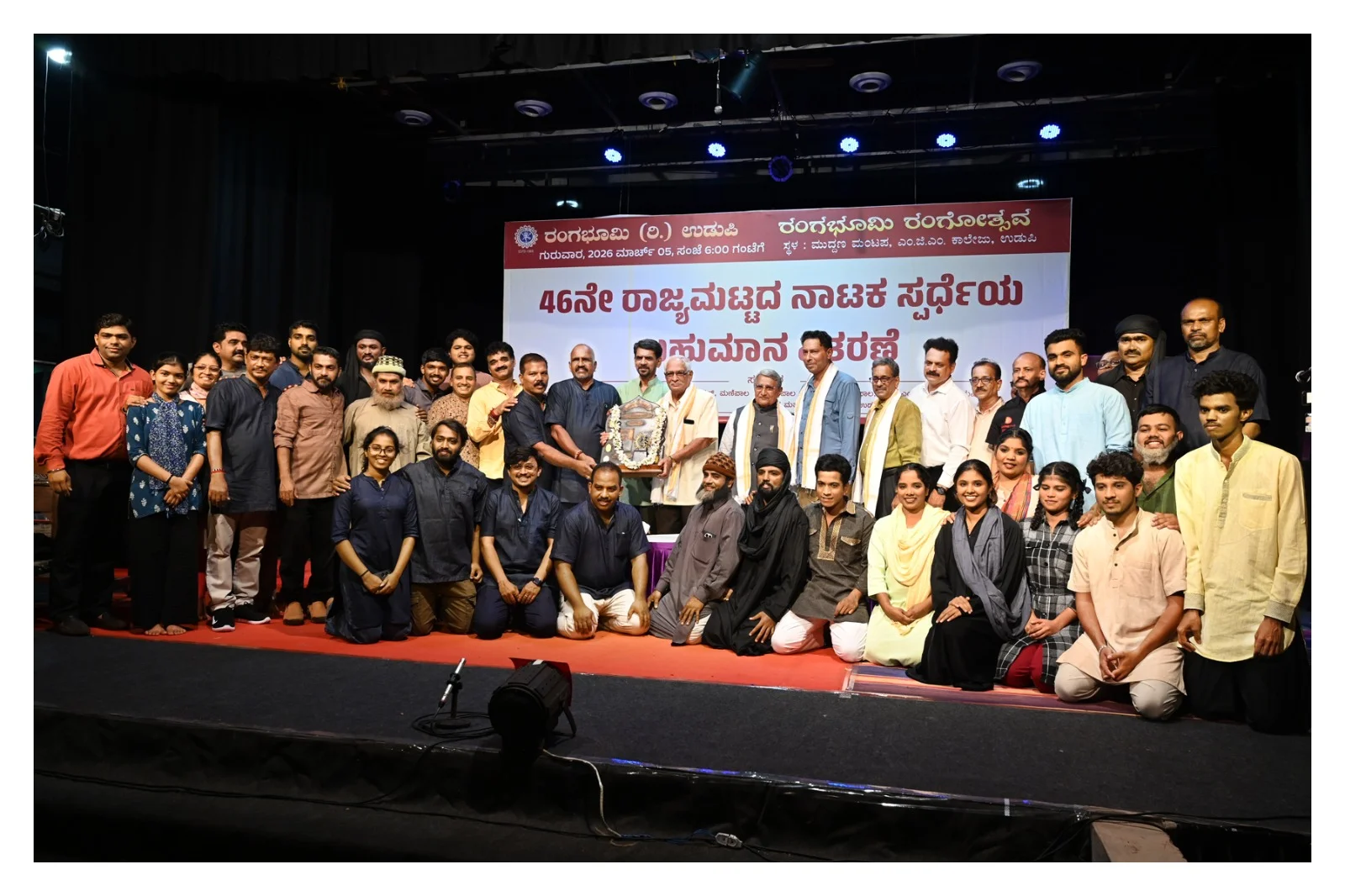 ಕಾರ್ಯಕ್ರಮದಲ್ಲಿ ಎಂಜಿಎo ಕಾಲೇಜಿನ ಉಪ ಪ್ರಾಂಶುಪಾಲ ಡಾ. ವಿಶ್ವನಾಥ ಪೈ ಎಂ., ರಂಗಭೂಮಿಯ ಪ್ರಧಾನ ಕಾರ್ಯದರ್ಶಿ ಪ್ರದೀಪ್ಚಂದ್ರ ಕುತ್ಪಾಡಿ ಉಪಸ್ಥಿತರಿದ್ದರು. ರಂಗಭೂಮಿ ಸಂಸ್ಥೆಯ ಉಪಾಧ್ಯಕ್ಷ ಭಾಸ್ಕರ ರಾವ್ ಕಿದಿಯೂರು ಸ್ವಾಗತಿಸಿ, ಜಿ.ಪ್ರಭಾಕರ ತುಮರಿ ಕಾರ್ಯಕ್ರಮ ನಿರೂಪಿಸಿದರು. ಸುಬ್ರಮಣ್ಯ ಶೇರ್ವೆಗಾರ್ ವಂದಿಸಿದರು. ಸಭಾ ಕಾರ್ಯಕ್ರಮದ ಬಳಿಕ ಪ್ರಥಮ ಬಹುಮಾನ ಪಡೆದ ಸುಮನಾಸಾ ಕೊಡವೂರು ತಂಡದ ‘ಈದಿ’ ನಾಟಕದ ಮರು ಪ್ರದರ್ಶನ ನಡೆಯಿತು.
