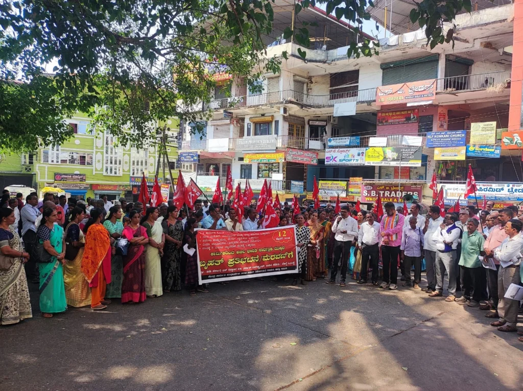 ಉಡುಪಿ: ಕೇಂದ್ರ ಸರ್ಕಾರದ ನಾಲ್ಕು ಲೇಬರ್ ಕೋಡ್ ಹಿಂಪಡೆಯಲು ಹಾಗೂ ಕೇಂದ್ರ ಸರ್ಕಾರದ ಕಾಯ್ದೆ ರಾಜ್ಯದ ಕಾಂಗ್ರೆಸ್ ಸರ್ಕಾರ ಜಾರಿ ಮಾಡದಂತೆ ಆಗ್ರಹಿಸಿ ಉಡುಪಿಯಲ್ಲಿ ಕಾರ್ಮಿಕ ಸಂಘಟನೆಗಳ ಜಂಟಿ ಸಮಿತಿ ನೇತೃತ್ವದಲ್ಲಿ ಬ್ರಹತ್ ಪ್ರತಿಭಟನೆ ನಡೆಯಿತು.