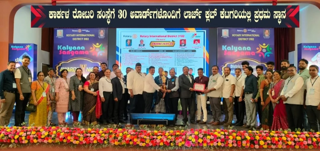 ಉಡುಪಿ: ಉಡುಪಿ ಜಿಲ್ಲೆಯ ಸಾಸ್ಥಾನದಲ್ಲಿ ಏರ್ಪಡಿಸಿದ್ದ 2024-25ನೇ ಸಾಲಿನ ಉಡುಪಿ ಹಾಸನ, ಚಿಕ್ಕಮಗಳೂರು, ಶಿವಮೊಗ್ಗ ಕಂದಾಯ ಜಿಲ್ಲೆಗಳನ್ನು ಒಳಗೊಂಡ ರೋಟರಿ ಜಿಲ್ಲೆ 3182 ರ ಜಿಲ್ಲಾ ಪ್ರಶಸ್ತಿ ಪ್ರದಾನ ಸಮಾರಂಭ “ಕಲ್ಯಾಣ ಸಂಗಮ” ದಲ್ಲಿ ರೋಟರಿ ಕ್ಲಬ್ ಕಾರ್ಕಳ ಸಾರ್ವಜನಿಕ ಸೇವೆಯಲ್ಲಿ ಪ್ರಥಮ ಸ್ಥಾನವನ್ನು ಪಡೆದುಕೊಂಡಿದೆ.