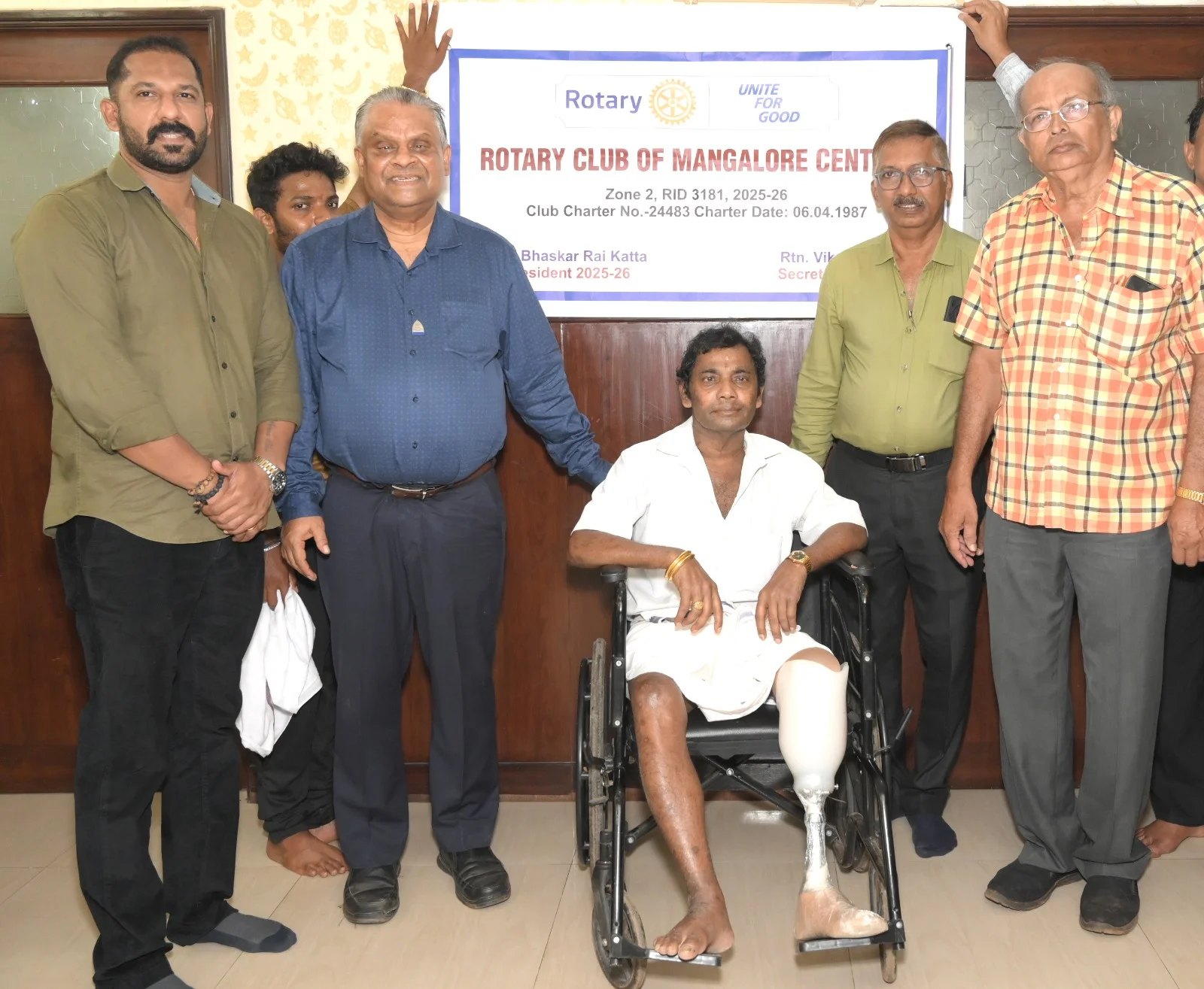 ಮಂಗಳೂರು : ರೋಟರಿ ಮಂಗಳೂರು ಸೆಂಟ್ರಲ್ ಸಂಸ್ಥೆಯು ಆರ್ಥಿಕವಾಗಿ ಹಿಂದುಳಿದ, ಕಾಲು ಕಳೆದುಕೊಂಡ ವ್ಯಕ್ತಿಯೊಬ್ಬರಿಗೆ 2.10 ಲಕ್ಷ ರೂಪಾಯಿ ಮೌಲ್ಯದ ಕೃತಕ ಕಾಲಿನ ದೇಣಿಗೆ ನೀಡಿ ಆ ವ್ಯಕ್ತಿಯು
