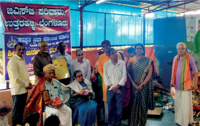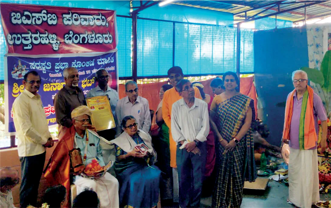 ಸಮಮಾರಂಭಕ್ಕೆ ಆಗಮಿಸಿದ ಗಣ್ಯರು ಹಾಗೂ ಜಿ.ಎಸ್.ಬಿ. ಪರಿವಾರು, ಸರಸ್ವತಿ ಪ್ರಭಾ ಪತ್ರಿಕಾ ಬಳಗದ ಸಹಕಾರದಿಂದ ಶ್ರೀ ಕೆ. ಜನಾರ್ಧನ ಭಟ್ ಅವರಿಗೆ ಮೊದಲಿಗೆ ಮೈಸೂರು ಪೇಟಾ ತೊಡಿಸಿ, ಹಾರ ಹಾಕಿ, ರೇಶ್ಮೆಯ ಶಾಲು ಹೊದಿಸಿ, ಸ್ವರಣಿಕೆ, ಸನ್ಮಾನ ಪತ್ರ, ಫಲ-ಪುಷ್ಪ ಸಹಿತ ರೂ. ೫,೦೦೧/- ಚೆಕ್ ನೀಡಿ ಪ್ರಶಸ್ತಿ ಪ್ರಧಾನಗೈದು ಸನ್ಮಾನಿಸಲಾಯಿತು. ಅವರ ಧರ್ಮಪತ್ನಿ ಶ್ರೀಮತಿ ಶ್ಯಾಮಲಾ ಭಟ್ ಇವರಿಗೂ ಶಾಲು ಹೊದಿಸಿ, ಅರಶಿನ-ಕುಂಕುಮ ನೀಡಿ, ಉಡಿ ತುಂಬಲಾಯಿತು. ಈ ಸಂದರ್ಭದಲ್ಲಿ ಬಸವನಗುಡಿ ಗೌಡ ಸಾರಸ್ವತ ಸಮಾಜದ ಉಪಾಧ್ಯಕ್ಷ ಶ್ರೀ ಎಮ್.ಜಿ. ನಾಯಕ್, ಜಿ.ಎಸ್..ಬಿ. ಪರಿವಾರು ಉತ್ತರಹಳ್ಳಿ ಇದರ ಅಧ್ಯಕ್ಷ ಶ್ರೀ ಎಮ್. ಸುರೇಂದ್ರ ನಾಯಕ್, ಕಾರ್ಯದರ್ಶಿ ಶ್ರೀ ಅಣ್ಣಪ್ಪ ಪ್ರಭು, ಉಪಾಧ್ಯಕ್ಷ ಶ್ರೀ ಮಧ ಪುರಾಣಿಕ, ಖಜಾಂಚಿ ಶ್ರೀ ಕೆ. ದಾಮೋದರ ನಾಯಕ, ಶ್ರೀ ಕೃಷ್ಣಾ ಎನ್. ಕಾಮತ್, ಶ್ರೀ ಎಸ್. ಗುಣ ಪೈ, ಶ್ರೀ ಬಿ. ಪ್ರಕಾಶ ಕಿಣಿ, ಸರಸ್ವತಿ ಪ್ರಭಾ ಕೊಂಕಣಿ ಮಾಸಿಕದ ವತಿಯಿಂದ ಸಂಪಾದಕ ಆರಗೋಡು ಸುರೇಶ ಶೆಣೈ, ಶ್ರೀ ಮಂಜುನಾಥ ಕಾಮತ್, ಶ್ರೀ ಗಣಪತಿ ಶೆಣೈ ಶ್ರೀ ಜಗದೀಶ ಪೈ ಸಹಿತ ಇನ್ನಿತರ ಗಣ್ಯರು, ಸಮಾಜ ಬಾಂದವರು ಉಪಸ್ಥಿತರಿದ್ದರು.