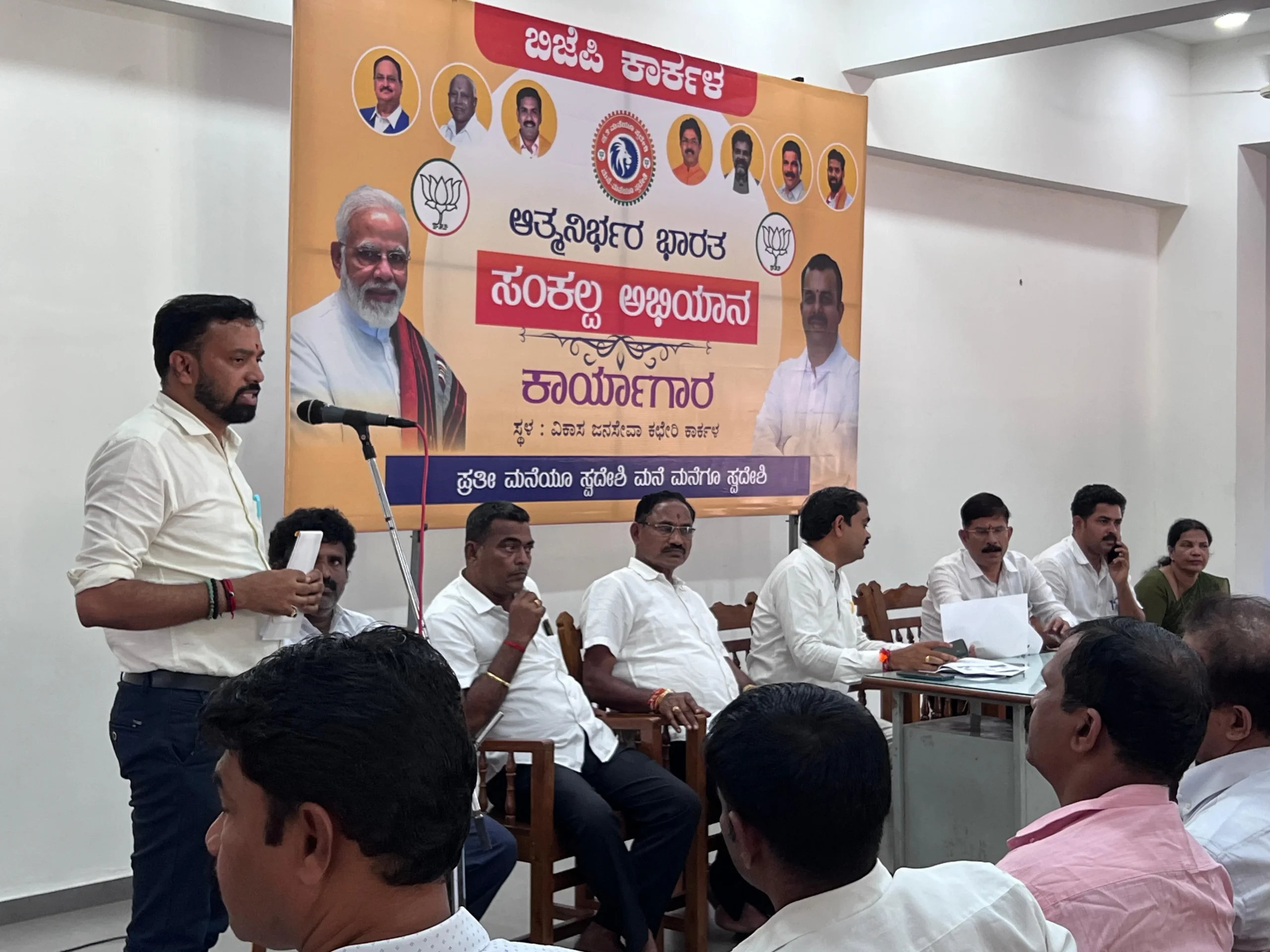 ಆತ್ಮ ನಿರ್ಭರ ಭಾರತ ಸಂಕಲ್ಪ ಅಭಿಯಾನ ಮತ್ತು ಕಾರ್ಯಗಾರ ಕಾರ್ಕಳ ಶಾಸಕರ ವಿಕಾಸ ಕಚೇರಿಯಲ್ಲಿ ನಡೆಯಿತು. ಕ್ಷೇತ್ರಾಧ್ಯಕ್ಷರಾದ ನವೀನ್ ನಾಯಕ್ ಅಧ್ಯಕ್ಷತೆ ವಹಿಸಿದ್ದರು. ಜಿಲ್ಲಾ ಬಿಜೆಪಿ ಕಾರ್ಯದರ್ಶಿ ಹಾಗೂ ಆತ್ಮನಿರ್ಭರ ಭಾರತದ ಅಭಿಯಾನದ ಜಿಲ್ಲಾ ವಕ್ತಾರರಾದ ಶ್ರೀಕಾಂತ್ ನಾಯಕ್ ಈ ಅಭಿಯಾನದ ಕಾರ್ಯಯೋಜನೆಗಳ ಮಾಹಿತಿ ನೀಡಿದರು.
