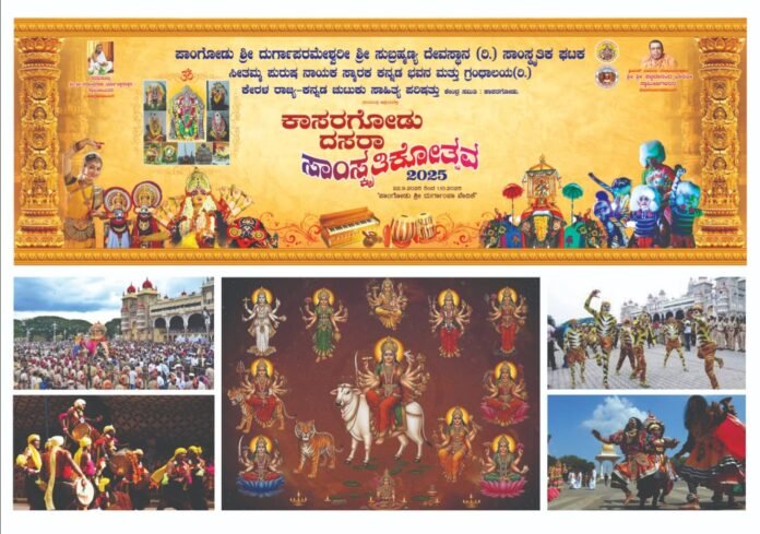 ಕಾಸರಗೋಡು : ಇಲ್ಲಿನ ನುಳ್ಳಿಪ್ಪಾಡಿಯ ಸೀತಮ್ಮ ಪುರುಷ ನಾಯಕ ಕನ್ನಡ ಭವನ ಮತ್ತು ಗ್ರಂಥಾಲಯ, ಕೇರಳ ರಾಜ್ಯ ಕನ್ನಡ ಚುಟುಕು ಸಾಹಿತ್ಯ ಪರಿಷತ್ತಿನ ಕೇಂದ್ರ ಸಮಿತಿ ಮತ್ತು ಪಾಂಗೋಡು ಶ್ರೀ ದುರ್ಗಾಪರಮೇಶ್ವರಿ ಸುಬ್ರಹ್ಮಣ್ಯ ದೇವಸ್ಥಾನದ ಸಾಂಸ್ಕೃತಿಕ ಸಮಿತಿಯ ಜಂಟಿ ಆಶ್ರಯದಲ್ಲಿ ಕೇರಳ ರಾಜ್ಯ ಕನ್ನಡ ಚುಟುಕು ಸಾಹಿತ್ಯ ಪರಿಷತ್ತಿನ.ಕಾಸರಗೋಡು ಜಿಲ್ಲಾ ಸಮಿತಿಯ ಸಹಕಾರದಲ್ಲಿ ಕಾಸರಗೋಡಿನ ಪಾಂಗೋಡು ಶ್ರೀ ದುರ್ಗಾಪರಮೇಶ್ವರಿ ಶ್ರೀ ಸುಬ್ರಮಣ್ಯ ಕ್ಷೇತ್ರದಲ್ಲಿ ಸೆ. 27ರಂದು ಅಪರಾಹ್ನ 1.30ರಿಂದ ಕಾಸರಗೋಡು ದಸರಾ ಸಾಂಸ್ಕೃತಿಕೋತ್ಸವ ನಡೆಯಲಿದೆ.