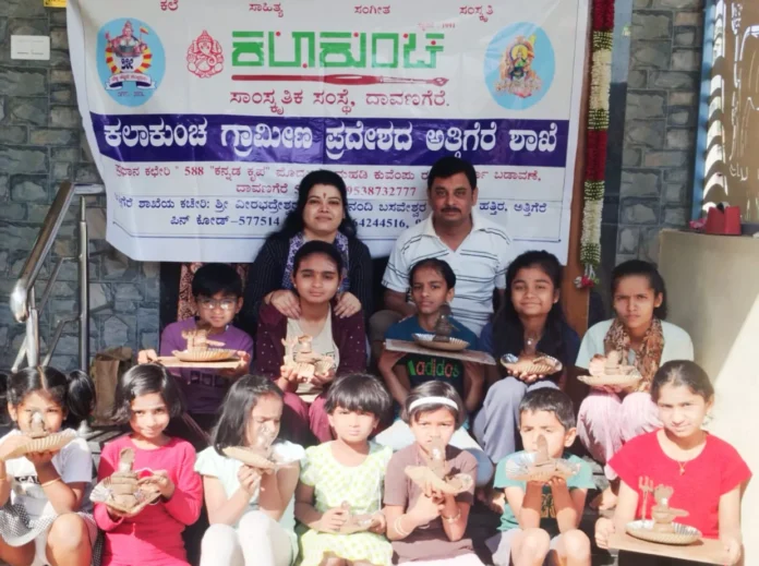 ದಾವಣಗೆರೆ : ದಾವಣಗೆರೆಯ ಕಲಾಕುಂಚ ಸಾಂಸ್ಕೃತಿಕ ಸಂಸ್ಥೆಯ ಅಂಗ ಸಂಸ್ಥೆ ಕಲಾಕುಂಚ ಗ್ರಾಮೀಣ ಪ್ರದೇಶದ ಅತ್ತಿಗೆರೆ ಶಾಖೆಯ ಆಶ್ರಯದಲ್ಲಿ ಮಹಾಶಿವರಾತ್ರಿ ಪ್ರಯುಕ್ತ ಮಕ್ಕಳು ಶಿವಭಕ್ತಿಯಿಂದ ಹುತ್ತದ ಮಣ್ಣಿನಲ್ಲಿ ಪರಮೇಶ್ವರ ಶಿವಲಿಂಗ ಸೃಷ್ಠಿ ಮಾಡಿ ಶಿವಧ್ಯಾನ ಮಾಡಿದರು ಎಂದು ದಾವಣಗೆರೆಯ ಕಲಾಕುಂಚ ಸಾಂಸ್ಕೃತಿಕ ಸಂಸ್ಥೆ ಸಂಸ್ಥಾಪಕರಾದ ಸಾಲಿಗ್ರಾಮ ಗಣೇಶ್ ಶೆಣೈ ತಿಳಿಸಿದ್ದಾರೆ.