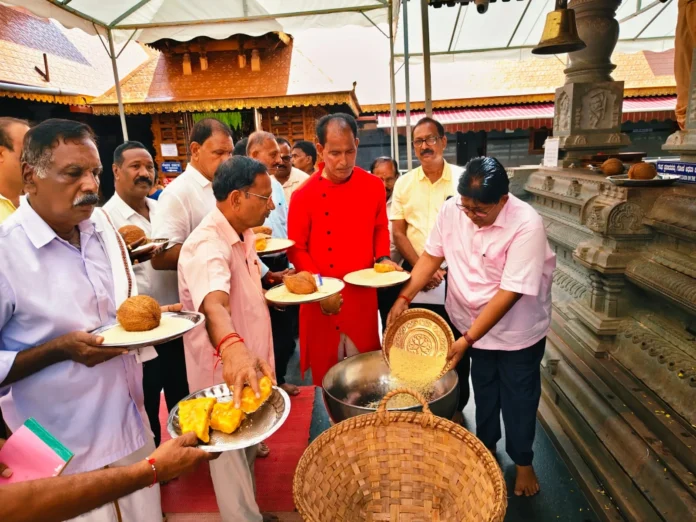 ಶ್ರೀ ಕ್ಷೇತ್ರ ಉಚ್ಚಿಲ ಶ್ರೀ ಮಹಾಲಕ್ಷ್ಮೀ ದೇವಾಲಯದಲ್ಲಿ ನಡೆಯುತ್ತಿರುವ ನಿತ್ಯ ಅನ್ನದಾನ ಸೇವೆ ನಿರಂತರವಾಗಿ ನಡೆಯಬೇಕೆನ್ನುವ ಸದುದ್ದೇಶದಿಂದ, ಆ ಸೇವೆಗೆ ಸಂಪನ್ಮೂಲಗಳನ್ನು ಕ್ರೋಢೀಕರಿಸುವ “ಮುಷ್ಠಿ ಅಕ್ಕಿ ಕಾಣಿಕೆ ಸೇವೆ”ಗೆ ತುಲಾ ಸಂಕ್ರಮಣದ ಶುಭ ದಿನವಾದ ಇಂದು (17.10.2025, ಶುಕ್ರವಾರ) ನಾಡೋಜ ಡಾ. ಜಿ. ಶಂಕರ್ ರವರು ಚಾಲನೆ ನೀಡಿದರು.