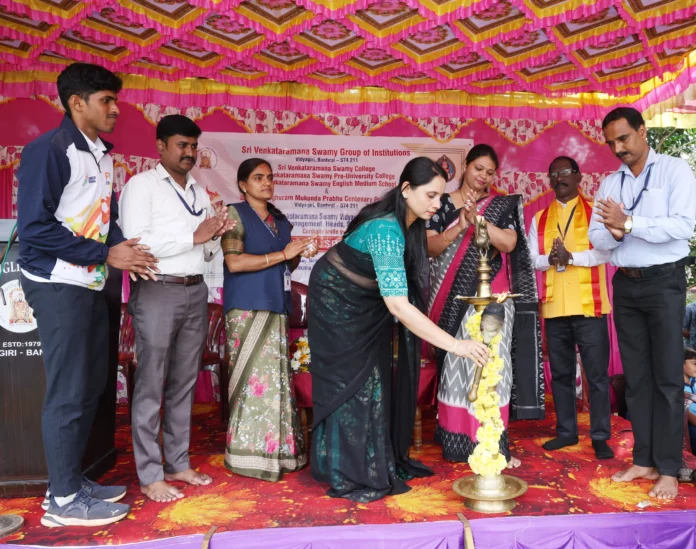ಕಾರ್ಯಕ್ರಮದಅಧ್ಯಕ್ಷತೆಯನ್ನು ಶ್ರೀ ವೆಂಕಟರಮಣ ಸ್ವಾಮೀ ಸಮೂಹ ವಿದ್ಯಾ ಸಂಸ್ಥೆಯ ಸಂಚಾಲಕಿ ಶ್ರೀಮತಿ ಕೆ ರೇಖಾಶೆಣೈ ವಹಿಸಿದ್ದರು.ಎಸ್.ವಿ.ಎಸ್. ಕಾಲೇಜಿನ ಪ್ರಾಂಶುಪಾಲರಾದ ಎಂ.ಡಿ.ಮAಚಿವೇದಿಕೆಯಲ್ಲಿ ಉಪಸ್ಥಿತರಿದ್ದರು.ಶ್ರೀ ವೆಂಕಟರಮಣಸ್ವಾಮಿ ಪದವಿ ಪೂರ್ವಕಾಲೇಜಿನ ಪ್ರಾಂಶುಪಾಲರಾದ ಸುದರ್ಶನ್ ಬಿ ಅತಿಥಿಗಳನ್ನು ಪರಿಚಯಿಸಿದರು.ಬಿ.ಆರ್.ಎಂ.ಪಿ.ಸಿ. ಶಾಲೆಯ ಪ್ರಾಂಶುಪಾಲರಾದ ಶ್ರೀಮತಿ ಪೂರ್ಣೇಶ್ವರಿ ಭಟ್ ಸ್ವಾಗತಿಸಿ, ಎಸ್.ವಿ.ಎಸ್. ಇಂಗ್ಲೀಷ್ ಶಾಲೆಯ ಮುಖ್ಯೋಪಾಧ್ಯಾಯರಾದ ಹರಿಪ್ರಸಾದ್ ವಂದಿಸಿದರು. ದೈಹಿಕ ಶಿಕ್ಷಕಿ ಪ್ರತೀಕ್ಷಾಕ್ರೀಡಾದಿನದ ಪ್ರತಿಜ್ಞಾವಿಧಿ ಬೋಧಿಸಿದರು. ವಿದ್ಯಾರ್ಥಿಗಳಾದಅನನ್ಯಾತಂಡದವರು ಪ್ರಾರ್ಥಿಸಿದರು.ಕಾರ್ಯಕ್ರಮದಆರಂಭದಲ್ಲಿ ಸಮೂಹ ಸಂಸ್ಥೆಗಳ ವಿದ್ಯಾರ್ಥಿಗಳಿಂದ ಪಥಸಂಚಲನ ನೆರವೇರಿತು. ಸಮೂಹ ವಿದ್ಯಾಸಂಸ್ಥೆಗಳ ದೈಹಿಕ ಶಿಕ್ಷಕರಾದ ರಾಜೇಶ್ಕುಮಾರ್ ಕೆ ಹಾಗೂ ಬಸವರಾಜ ಹನುಮಂತಕಾAಬ್ಳೆರವರು ಕ್ರೀಡಾಚಟುವಟಿಕೆಗಳನ್ನು ನೆರವೇರಿಸಿದರು.