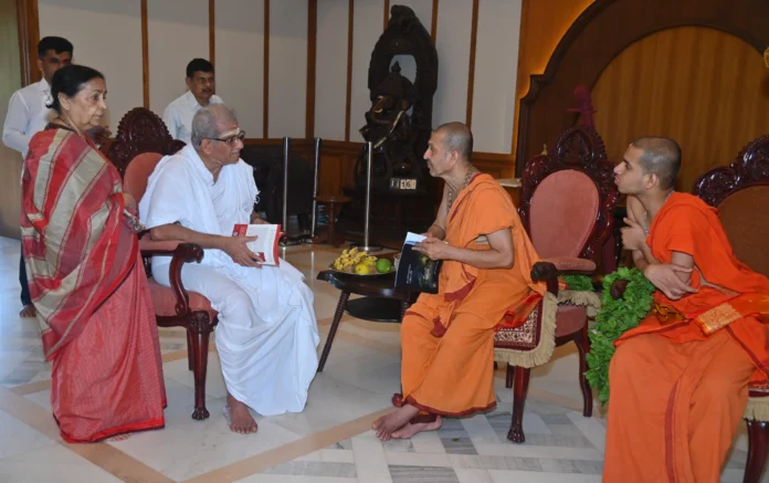 ಸ್ವಾಮೀಜಿಯವರು ಹೆಗ್ಗಡೆಯವರಿಗೆ ಪ್ರಸಾದ ನೀಡಿ ಶುಭ ಹಾರೈಸಿದರು.