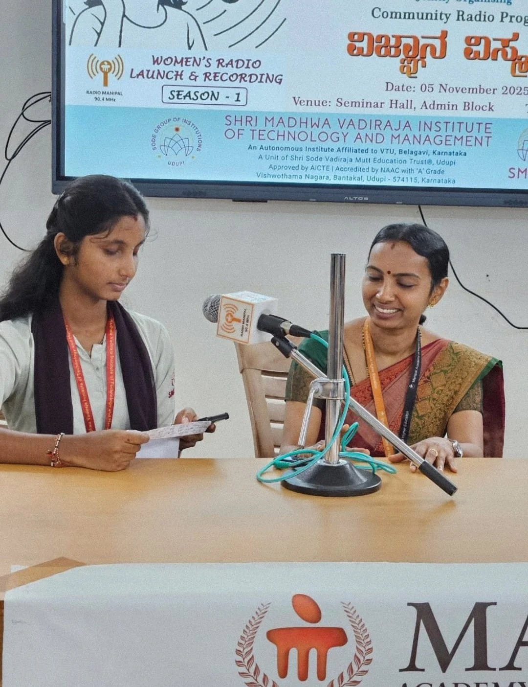 ಮಣಿಪಾಲದ ಎಂ.ಐ.ಸಿ ಕ್ಯಾಂಪಸ್ ನಲ್ಲಿರುವ  ರೇಡಿಯೋ ಮಣಿಪಾಲ್  ಸಮುದಾಯ ಬಾನುಲಿ ಕೇಂದ್ರದಲ್ಲಿ ಶ್ರೀ ಮಧ್ವವಾದಿರಾಜ ತಾಂತ್ರಿಕ ವಿದ್ಯಾಸಂಸ್ಥೆ, ಬಂಟಕಲ್ ಸಹಯೋಗದಲ್ಲಿ ಮಾರ್ಚ್ 4 ರಂದು ಬುಧವಾರ  ಸಂಜೆ 5.30 ರ ಸಮಯಕ್ಕೆ ವಿಜ್ಞಾನವಿಸ್ಮಯ ಸರಣಿ ಕಾರ್ಯಕ್ರಮದ 15 ನೇ ಸಂಚಿಕೆ ಪ್ರಸಾರವಾಗಲಿದೆ. ಶ್ರೀ ಮಧ್ವವಾದಿರಾಜ ತಾಂತ್ರಿಕ ವಿದ್ಯಾಸಂಸ್ಥೆ ವಿದ್ಯಾರ್ಥಿನಿ ದೀಕ್ಷಾ ಭಾಗವಹಿಸಲಿದ್ದಾರೆ. ಇದು ಮಾರ್ಚ್ 5 ಗುರುವಾರ ಮಧ್ಯಾಹ್ನ 1.30 ಕ್ಕೆ ಮರುಪ್ರಸಾರವಾಗಲಿದೆ.