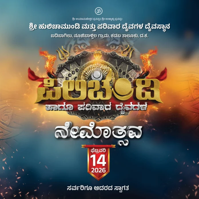 ಶ್ರೀ ಹುಲಿಚಾಮುಂಡಿ ಮತ್ತು ಪರಿವಾರ ದೈವಗಳ ದೈವಸ್ಥಾನ ಕಾರಣಿಕ ಕ್ಷೇತ್ರ ಬದಿಬಾಗಿಲು, ನೂಜಿಬಾಳ್ತಿಲ, ಕಡಬ ಇಲ್ಲಿಯ ವಾರ್ಷಿಕ ನೇಮೋತ್ಸವ ದಿನಾಂಕ 14-02-2026 ಶನಿವಾರ ಭಕ್ತಿ ಪೂರ್ವಕವಾಗಿ ನಡೆಯಲಿದೆ.