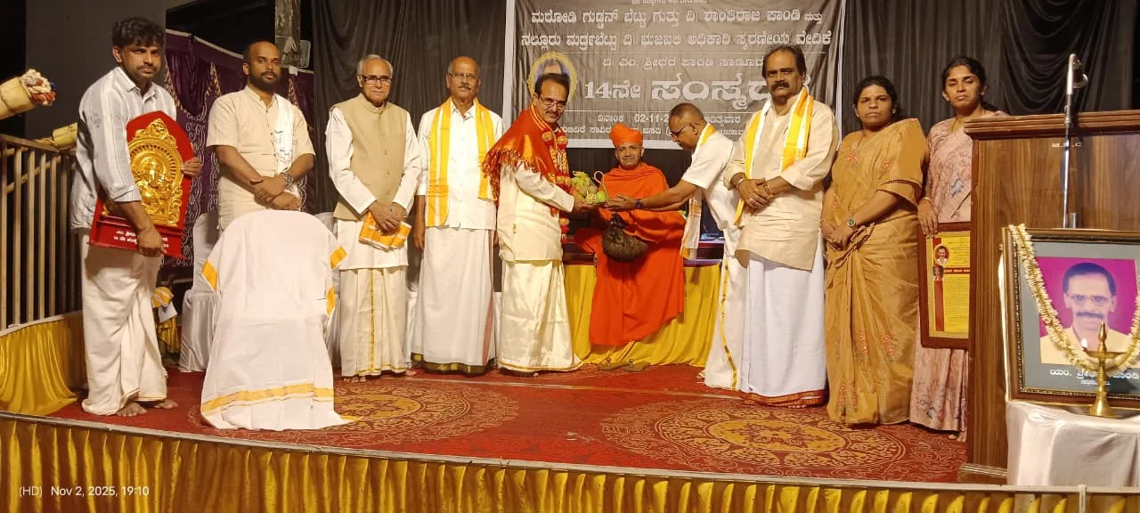 ದಿನಾಂಕ 02-11-2025 ರಂದು ಮೂಡುಬಿದಿರೆಯ ಪ್ರಸಿದ್ಧ ಜೈನ ಕ್ಷೇತ್ರ ಸಾವಿರ ಕಂಬದ ಬಸದಿ ಆವರಣದಲ್ಲಿ ಜೈನ ಪರಂಪರೆಯ ಶ್ರೇಷ್ಠ ಸಾಹಿತಿ ಮತ್ತು ಯಕ್ಷಗಾನ ಪ್ರಸಂಗಕರ್ತ ದಿವಂಗತ ಶ್ರೀಧರ ಪಾಂಡಿ ಸಾಣೂರು ಇವರ 14ನೇ ಸಂಸ್ಮರಣಾ ಹಾಗೂ ಪ್ರಶಸ್ತಿ ಪ್ರದಾನ ಸಮಾರಂಭವು ನೆರವೇರಿತು.