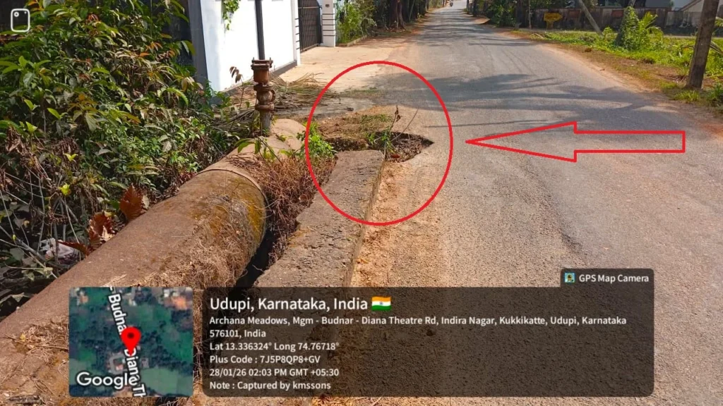 ಈ ಅಪಾಯಕಾರಿಯಾದ ರಸ್ತೆ ಗುಂಡಿ ಡಯಾನಾ ಥಿಯೇಟರ್ – ಎಂಜಿಎಂ ಬುಡ್ನಾರ್ ರಸ್ತೆ ಸಂಪರ್ಕಿಸುವ ಮಾರ್ಗದಲ್ಲಿ, ಸಣ್ಣ ಸೇತುವೆಯ ಸಮೀಪದಲ್ಲಿದ್ದು, ಈ ರಸ್ತೆ ಪ್ರತಿದಿನ ಶಾಲಾ ಮಕ್ಕಳು, ಹಿರಿಯ ನಾಗರಿಕರು, ಬೆಳಗಿನ ನಡಿಗೆ ಮಾಡುವವರು, ಹಲವಾರು ದ್ವಿಚಕ್ರ ವಾಹನಗಳು ಹಾಗೂ ಸಾರ್ವಜನಿಕ ಬಸ್ಗಳು ಬಳಸುವ ಪ್ರಮುಖ ಮಾರ್ಗವಾಗಿದೆ. ಯಾವುದೇ ಎಚ್ಚರಿಕಾ ಫಲಕ ಅಥವಾ ತಡೆಗೋಡೆ ಇಲ್ಲದಿರುವುದರಿಂದ ಈ ಗುಂಡಿ ಭಾರೀ ಅಪಘಾತಗಳಿಗೆ ಮತ್ತು ಜೀವಹಾನಿಗಳಿಗೆ ಕಾರಣವಾಗುವ ಸಾಧ್ಯತೆ ಇದೆ.