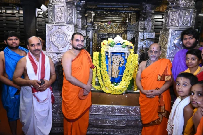 ಉತ್ಸವ ಪ್ರಿಯನಾದ ಶ್ರೀ ಕೃಷ್ಣ ದೇವರಿಗೆ ಪರ್ಯಾಯದ ಮೊದಲ ದಿನದಿಂದಲೂ ಭಕ್ತವೃಂದವು ಕಾತರದಿಂದ ನಿರೀಕ್ಷಿಸುವಂತೆ ಮಾಡಿ, ಅಲಂಕಾರಪ್ರಿಯನನ್ನು ದಿನಕ್ಕೊಂದು ವಿಶೇಷವಾಗಿ ಅಲಂಕಾರದಿಂದ ಪೂಜಿಸುತ್ತಿರುವ ಅಲಂಕಾರ ತಜ್ಞ ಎಂದು ಎಲ್ಲರಿಂದಲೂ ಕೀರ್ತಿ ಪಡೆದಿರುವ ಕಿರಿಯ ಶ್ರೀಗಳು ಅದಮಾರು ಮಠದ ಹಿರಿಯ ಶ್ರೀಗಳಾದ ಶ್ರೀ ವಿಶ್ವಪ್ರಿಯ ತೀರ್ಥ ಶ್ರೀಪಾದರ ದಿವ್ಯ ಹಸ್ತಗಳಿಂದ, ಶ್ರೀ ಸುಗುಣೇಂದ್ರ ತೀರ್ಥ ಶ್ರೀಪಾದರ ದಿವ್ಯ ಉಪಸ್ಥಿತಿಯಲ್ಲಿ ಇಂದು ವಿಶೇಷವಾಗಿ ಶ್ರೀ ಕೃಷ್ಣ ದೇವರಿಗೆ ಮುತ್ತಿನ ಕವಚವನ್ನು ಸಮರ್ಪಿಸಲಿದ್ದಾರೆ. ಸಾಯಂ ಸಾಲಂಕೃತ ಪಲ್ಲಕ್ಕಿಯಲ್ಲಿ ಮುತ್ತಿನ ಕವಚವನ್ನು ಮೆರವಣಿಗೆಯಲ್ಲಿ ವೈಭವದಿಂದ ಪೂಜ್ಯ ಶ್ರೀಪಾದದ್ವಯರ ಉಪಸ್ಥಿತಿಯಲ್ಲಿ ಶ್ರೀ ಕೃಷ್ಣ ಮಠಕ್ಕೆ ತರಲಾಯಿತು.