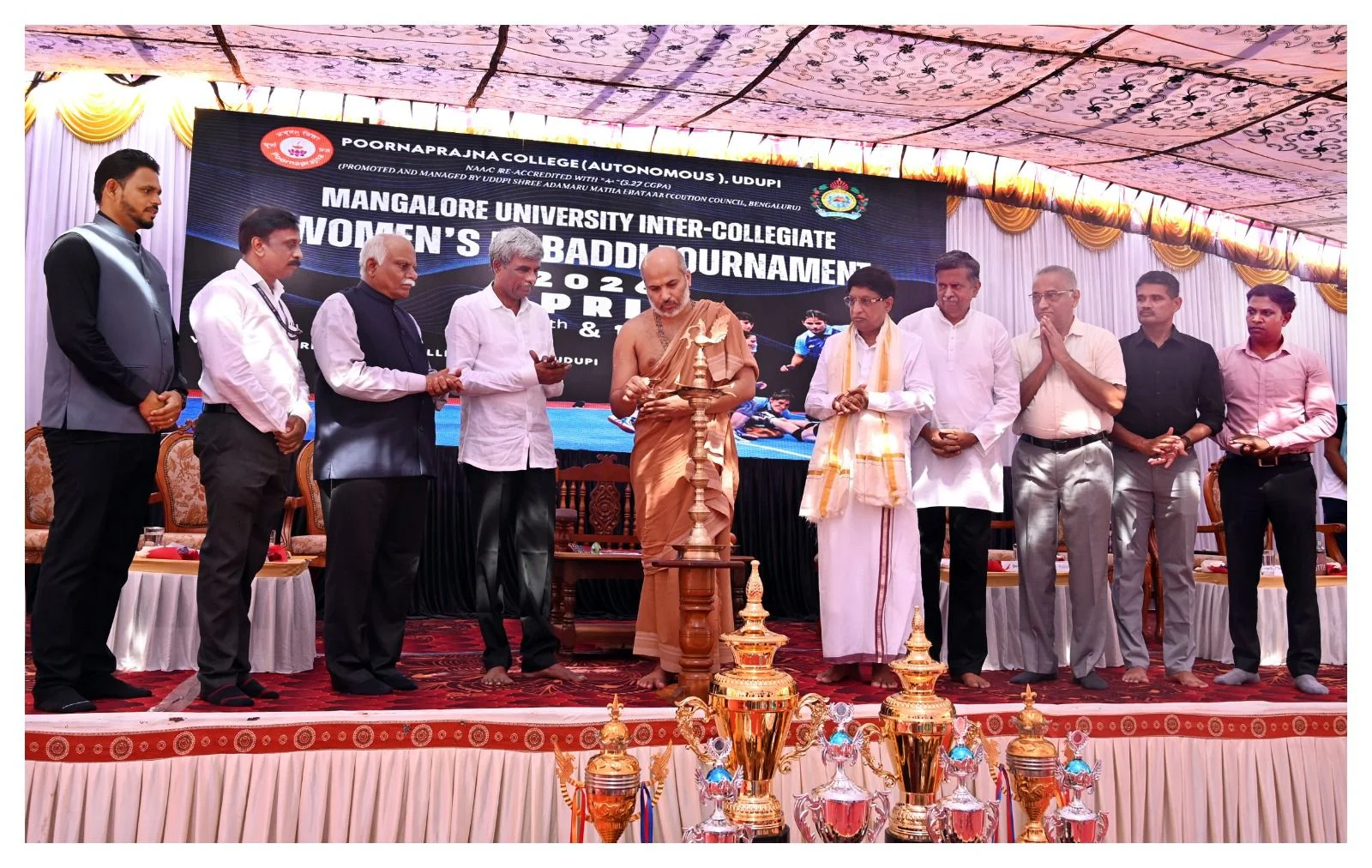 ಉಡುಪಿ : ಮಂಗಳೂರು ವಿವಿ ಹಾಗೂ ಉಡುಪಿಯ ಪೂರ್ಣಪ್ರಜ್ಞ ಕಾಲೇಜಿನ (ಸ್ವಾಯತ್ತ) ಜಂಟಿ ಆಶ್ರಯದಲ್ಲಿ ಮಂಗಳೂರು ವಿಶ್ವವಿದ್ಯಾನಿಲಯ ಮಟ್ಟದ ಅಂತರ್ ಕಾಲೇಜು ಮಹಿಳಾ ಕಬಡ್ಡಿ ಪಂದ್ಯಾಟವನ್ನು ಉಡುಪಿ ಶ್ರೀ ಅದಮಾರು ಮಠಾಧೀಶರೂ, ಬೆಂಗಳೂರಿನ ಯುಎಸ್ಎಎಂಇಸಿ ಅಧ್ಯಕ್ಷರೂ ಆಗಿರುವ ಪರಮಪೂಜ್ಯ ಶ್ರೀ ಶ್ರೀ ಈಶಪ್ರಿಯ ತೀರ್ಥ ಶ್ರೀಪಾದರು ದೀಪ ಬೆಳಗುವ ಮೂಲಕ ಉದ್ಘಾಟಿಸಿದರು. ಉಡುಪಿ ಶ್ರೀ ಅದಮಾರು ಮಠದ ಹಿರಿಯ ಯತಿಗಳಾಗಿರುವ ಪರಮಪೂಜ್ಯ ಶ್ರೀ ಶ್ರೀ ವಿಶ್ವಪ್ರಿಯತೀರ್ಥ ಶ್ರೀಪಾದರು ಅನುಗ್ರಹ ಸಂದೇಶ ನೀಡಿದರು.