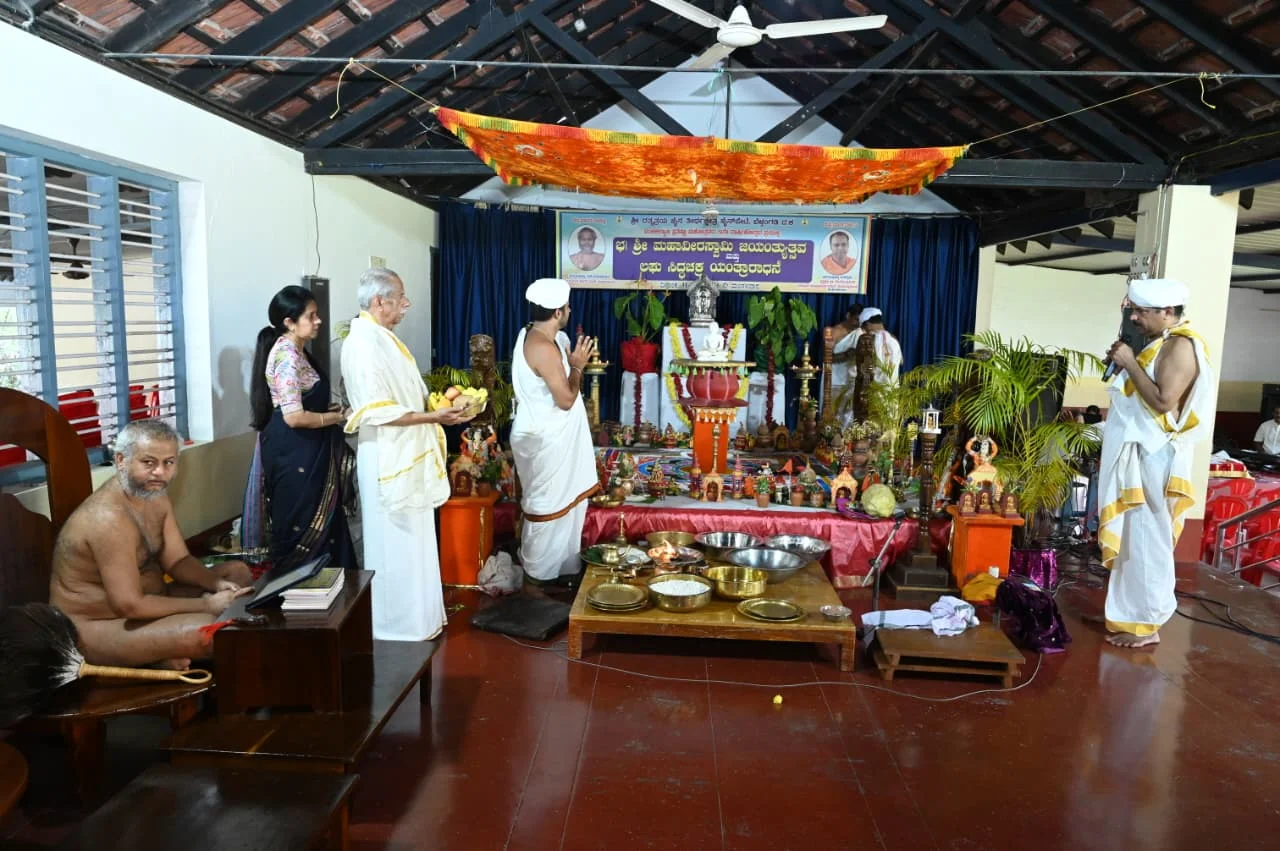 ಪೂಜ್ಯ ಏಲಾಚಾರ್ಯ ಪ್ರಸಂಗಸಾಗರ ಮುನಿಮಹಾರಾಜರ ದಿವ್ಯ ಉಪಸ್ಥಿತಿಯಲ್ಲಿ ಮಂಗಳವಾರ ಬೆಳ್ತಂಗಡಿ ಬಸದಿಯಲ್ಲಿ ಹನ್ನೆರಡನೆ ವಾರ್ಷಿಕೋತ್ಸವ ಸಂದರ್ಭದಲ್ಲಿ ಲಘುಸಿದ್ಧಚಕ್ರ ಯಂತ್ರಾರಾಧನೆ ನಡೆಯಿತು.