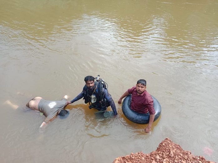 ಮೂಡುಬಿದಿರೆ: ಕಳೆದ ಎರಡು ದಿನಗಳ ಹಿಂದೆ ವಾಲ್ಪಾಡಿ ಗ್ರಾಮ ವ್ಯಾಪ್ತಿಯ ಜೋಗೊಟ್ಟು ಎಂಬಲ್ಲಿ ಕಾಲು ಜಾರಿ ನೀರಿಗೆ ಬಿದ್ದು ಕೊಚ್ಚಿಕೊಂಡು ಹೋಗಿದ್ದ ಆನೆಗುಡ್ಡೆಯ ಗುರುಪ್ರಸಾದ್ ಭಟ್ ಅವರ ಮೃತದೇಹವನ್ನು ಭಾನುವಾರ ಈಜು ತಜ್ಞ ಈಶ್ವರ್ ಮಲ್ಪೆ ತಂಡ, ಸ್ಥಳೀಯರ ಸಹಕಾರದೊಂದಿಗೆ ಮೇಲಕ್ಕೆತ್ತಿದ್ದಾರೆ.