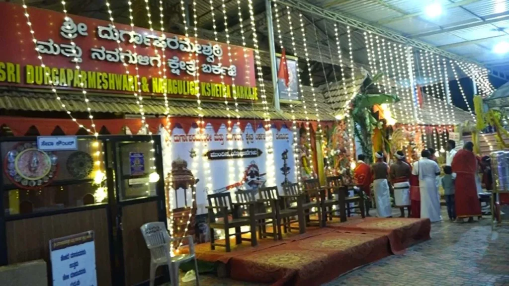 ವೇಣೂರು: ವೇಣೂರಿನ ನಿಟ್ಟಡೆ ಗ್ರಾಮದ ಬರ್ಕಜೆ ಎಂಬ ಪುಟ್ಟ ಊರಿನಲ್ಲಿ ದುರ್ಗಾಪರಮೇಶ್ವರಿ ದೇವಸ್ಥಾನದಲ್ಲಿ ಕ್ಷೇತ್ರಪಾಲಕರಾದ ಒಂಬತ್ತು ಗುಳಿಗ ದೈವಗಳಿಗೆ ಏಕಕಾಲದಲ್ಲಿ ನರ್ತನ ಸೇವೆ ಸಲ್ಲಿಸಲಾಯಿತು. ಇದು ತುಳುನಾಡಿನಲ್ಲಿ ಬಹಳ ಅಪರೂಪದ ಘಟನೆಯಾಗಿದೆ. ತುಳುನಾಡಿನಲ್ಲಿ ವಿಶಿಷ್ಟ ಸಾಂಸ್ಕೃತಿಕ ಪರಂಪರೆ ದೈವಾರಾಧನೆ.