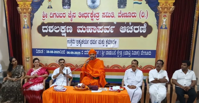ಅವರು ಶನಿವಾರ ವೇಣೂರು ಬಾಹುಬಲಿ ಕ್ಷೇತ್ರದಲ್ಲಿ ಯಾತ್ರಿನಿವಾಸದಲ್ಲಿ ಕ್ಷಮಾವಳಿಯೊಂದಿಗೆ ದಶಲಕ್ಷಣ ಪರ್ವದ ಸಮಾರೋಪ ಸಮಾರಂಭದಲ್ಲಿ ಮಂಗಲಪ್ರವಚನ ನೀಡಿದರು.