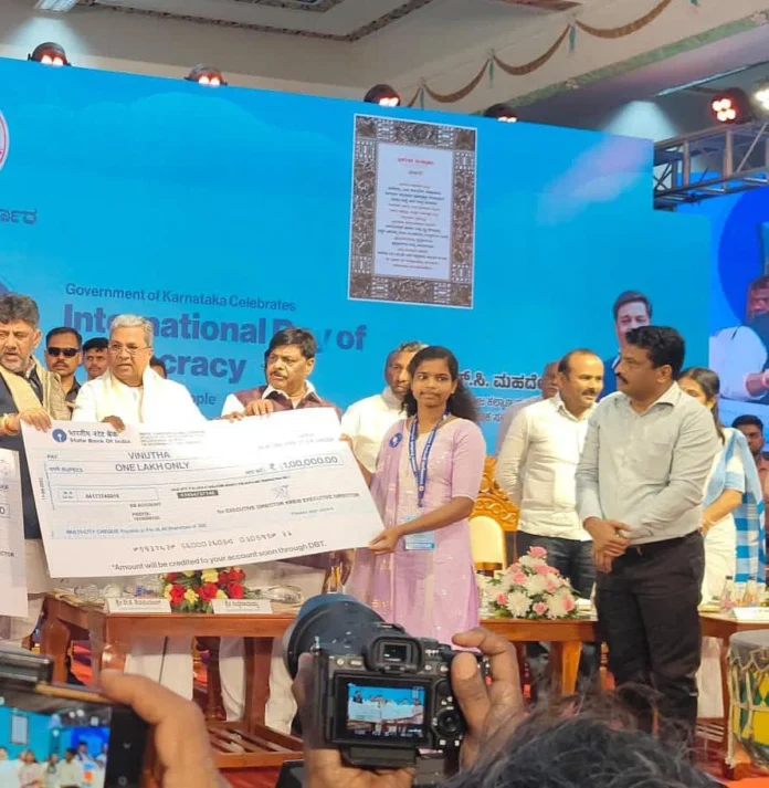 Home Uncategorized ರೆಂಜಾಳದ ವಿದ್ಯಾಪೋಷಕ್ ವಿದ್ಯಾರ್ಥಿನಿ ವಿನುತಾ ಅವರಿಗೆ ಮುಖ್ಯಮಂತ್ರಿ ಸಿದ್ದರಾಮಯ್ಯ ಅವರಿಂದ ರೂ.1,00,000/- ಪ್ರೋತ್ಸಾಹ ಧನ