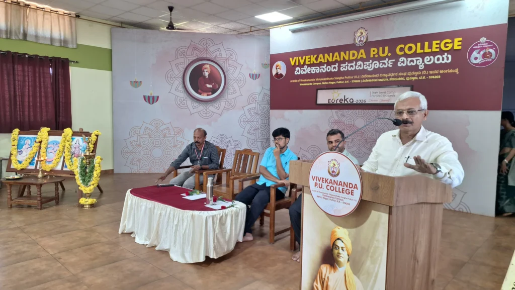 ವಿವೇಕಾನಂದ ಪದವಿಪೂರ್ವ ಕಾಲೇಜಿನಲ್ಲಿ ಏಪ್ರಿಲ್ 6 ರಿಂದ 11ರವರೆಗೆ ನಡೆಯಲಿರುವ ರಾಜ್ಯಮಟ್ಟದ ವ್ಯಕ್ತಿತ್ವ ವಿಕಸನ ಶಿಬಿರ “ಯುರೇಕಾ-2026″ ಇದರ ಉದ್ಘಾಟನಾ ಕಾರ್ಯಕ್ರಮವನ್ನು ನೆರವೇರಿಸಿಕೊಟ್ಟು,ಕಲಿಕೆಯು ಪುಸ್ತಕಗಳ ಪಾಠಗಳಲ್ಲಿ ಮಾತ್ರ ಸೀಮಿತವಾಗದೆ, ವ್ಯಕ್ತಿತ್ವವನ್ನು ರೂಪಿಸುವ, ಮೌಲ್ಯಗಳನ್ನು ಬೆಳೆಸುವ ಮತ್ತು ಸೃಜನಾತ್ಮಕ ಚಿಂತನೆಗೆ ಪ್ರೇರೇಪಿಸುವ ಶಕ್ತಿಯಾಗಿದೆ. ನಿಜವಾದ ಶಿಕ್ಷಣವು ನಮ್ಮೊಳಗಿನ ಸಾಮರ್ಥ್ಯವನ್ನು ಹೊರತಂದು, ಸಮಾಜದೊಂದಿಗೆ ಸಮನ್ವಯವಾಗಿ ಬದುಕುವ ದಾರಿಗೆ ದೀಪವಾಗುತ್ತದೆ ಎಂದು ನುಡಿದರು.