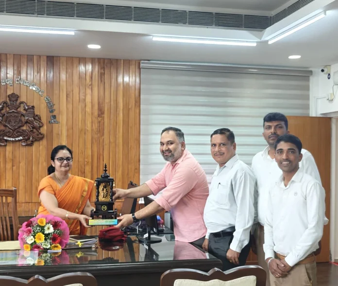 ಉಡುಪಿ: ಮಲಬಾರ್ ಗೋಲ್ಡ್ ಅಂಡ್ ಡೈಮಂಡ್ಸ್ ಉಡುಪಿ ಶಾಖೆ ವತಿಯಿಂದ ನೂತನವಾಗಿ ಆಗಮಿಸಿದ ಉಡುಪಿ ಜಿಲ್ಲಾಧಿಕಾರಿ ಸ್ವರೂಪ ಟಿ.ಕೆ ರವರಿಗೆ ಶಾಖಾ ಮುಖ್ಯಸ್ಥರಾದ ಹಫೀಝ್ ರೆಹಮಾನ್ ಹೂ ಗುಚ್ಛ ನೀಡುವ ಮೂಲಕ ಸ್ವಾಗತಿಸಿದರು.