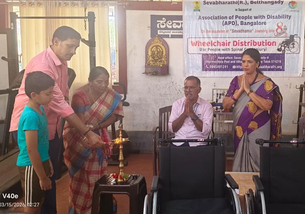 ಸೌತಡ್ಕ : ಬೆಂಗಳೂರು APD ಸಂಸ್ಥೆಯ ಸಹಕಾರದೊಂದಿಗೆ ಪ್ರಸ್ತುತ ವರ್ಷದಲ್ಲಿ 100 ಗಾಲಿಕುರ್ಚಿಯನ್ನು ನೀಡುವ ಯೋಜನೆಯನ್ನು ಹೊಂದಿದ್ದು. ಅದರಂತೆ, ಕಳೆದ ಸೆಪ್ಟೆಂಬರ್ ತಿಂಗಳಲ್ಲಿ ಸೇವಾಧಾಮವು 8ನೇ ವರ್ಷಕ್ಕೆ ಪಾದಾರ್ಪಣೆ ಮಾಡಿದ ಸಂದರ್ಭದಲ್ಲಿ 30 ಗಾಲಿಕುರ್ಚಿಗಳನ್ನು ವಿತರಿಸಲಾಗಿತ್ತು. ಈ ತಿಂಗಳಲ್ಲಿ 32 ಗಾಲಿಕುರ್ಚಿಗಳನ್ನು ವಿತರಿಸುವುದಾಗಿ ನಿರ್ಧರಿಸಿದ್ದು ಉಡುಪಿಯ ಶ್ರೀ ನಿಹಾಲ್ ವಿಲ್ಸನ್, ಕಾರ್ಕಳದ ಶ್ರೀ ಸಂದೀಶ್, ಆತ್ರಾಡಿಯ ಶ್ರೀ ರಮೇಶ್ ನಾಯ್ಕ್ ರವರಿಗೆ ಗಾಲಿಕುರ್ಚಿ ವಿತರಣಾ ಕಾರ್ಯಕ್ರಮವನ್ನು ಮಾರ್ಚ್ 15 ರಂದು ಸೌತಡ್ಕ ಸೇವಾಧಾಮ ಬೆನ್ನುಹುರಿ ಅಪಘಾತಕ್ಕೊಳಗಾದ ದಿವ್ಯಾಂಗರ ಪುನಶ್ಚೇತನ ಕೇಂದ್ರದಲ್ಲಿ ನಡೆಸಲಾಯಿತು.