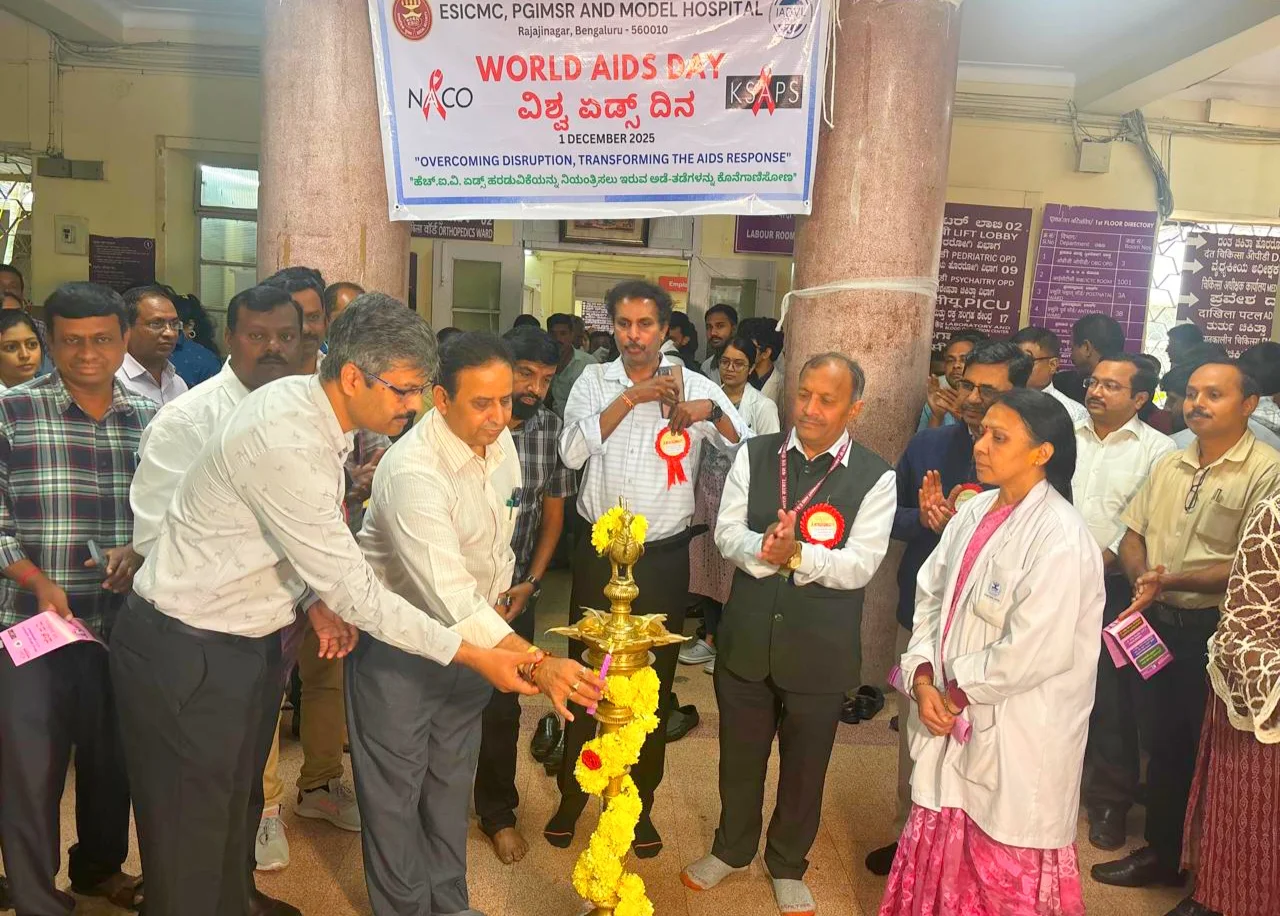 ಬೆಂಗಳೂರು; ರಾಜಾಜಿನಗರದ ಇ.ಎಸ್.ಐ.ಸಿ ಮೆಡಿಕಲ್ ಕಾಲೇಜು, ಪಿಜಿಐಎಂಎಸ್ಆರ್ ಮತ್ತು ಮಾದರಿ ಆಸ್ಪತ್ರೆಯಲ್ಲಿ ಇಂದು ವಿಶ್ವ ಏಡ್ಸ್ ದಿನಾಚರಣೆ ಅಂಗವಾಗಿ ವ್ಯಾಪಕ ಆರೋಗ್ಯ ಜಾಗೃತಿ ಕಾರ್ಯಕ್ರಮವನ್ನು ಆಯೋಜಿಸಲಾಯಿತು.