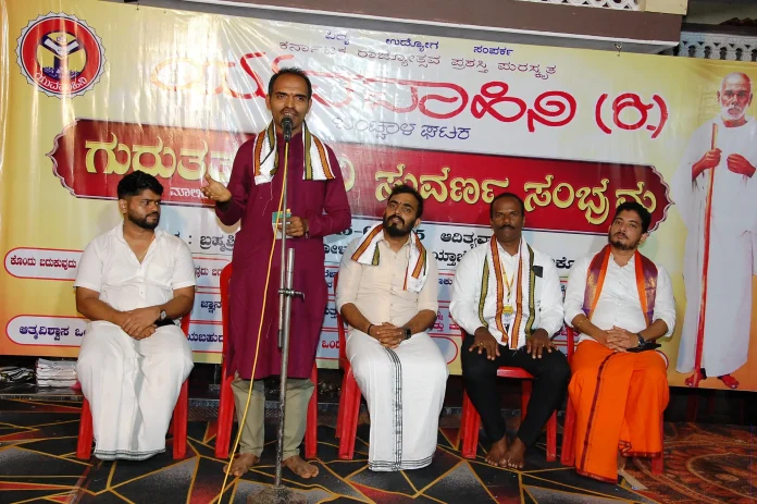 ಅವರು ಯುವವಾಹಿನಿ ಬಂಟ್ವಾಳ ಘಟಕದ ಆಶ್ರಯದಲ್ಲಿ ನಾರಾಯಣಗುರು ತತ್ವ ಪ್ರಚಾರ ಅನುಷ್ಠಾನ ನಿರ್ದೇಶಕ ಪ್ರಜಿತ್ ಅಮೀನ್ ಏರಮಲೆ ಇವರ ಬ್ರಹ್ಮಶ್ರೀ ನಿಲಯದಲ್ಲಿ ನಡೆದ ಗುರುತತ್ವವಾಹಿನಿ 50ರ ಮಾಲಿಕೆ ಸುವರ್ಣ ಸಂಭ್ರಮದ ಮುಖ್ಯ ಅತಿಥಿಯಾಗಿ ಭಾಗವಹಿಸಿ ಮಾತನಾಡಿದರು.